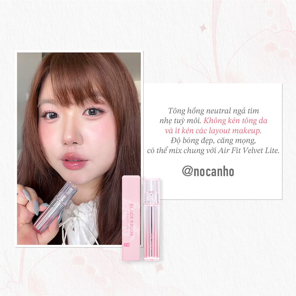 @nocanho: "Tông hồng neutral ngả tím nhẹ tùy theo sắc tố môi. Điểm cộng là không kén tông da và cực dễ mix các layout makeup. Độ bóng căng mọng này mà mix chung với Air Fit Velvet Lite thì đúng là 'đỉnh chóp'.