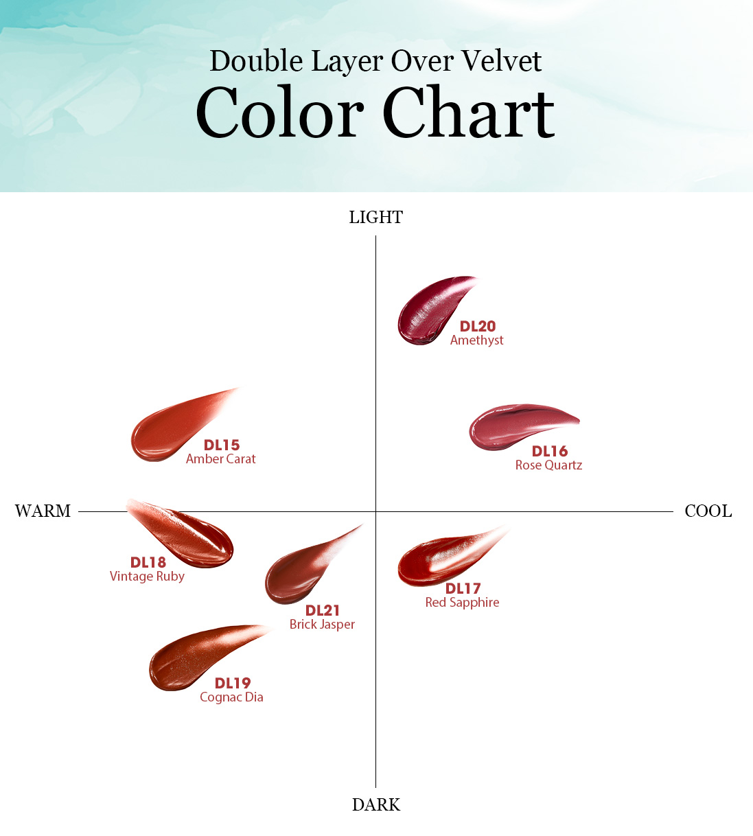 Nếu nàng yêu thích chất son kem mịn lì thời thượng, các mã màu thuộc dòng Double Layer Velvet (Ver 3 & Ver 4) như DL17, DL21 hoặc DL27 chính là những đại diện tiêu biểu nằm trong "khoảng an toàn" của bảng màu.