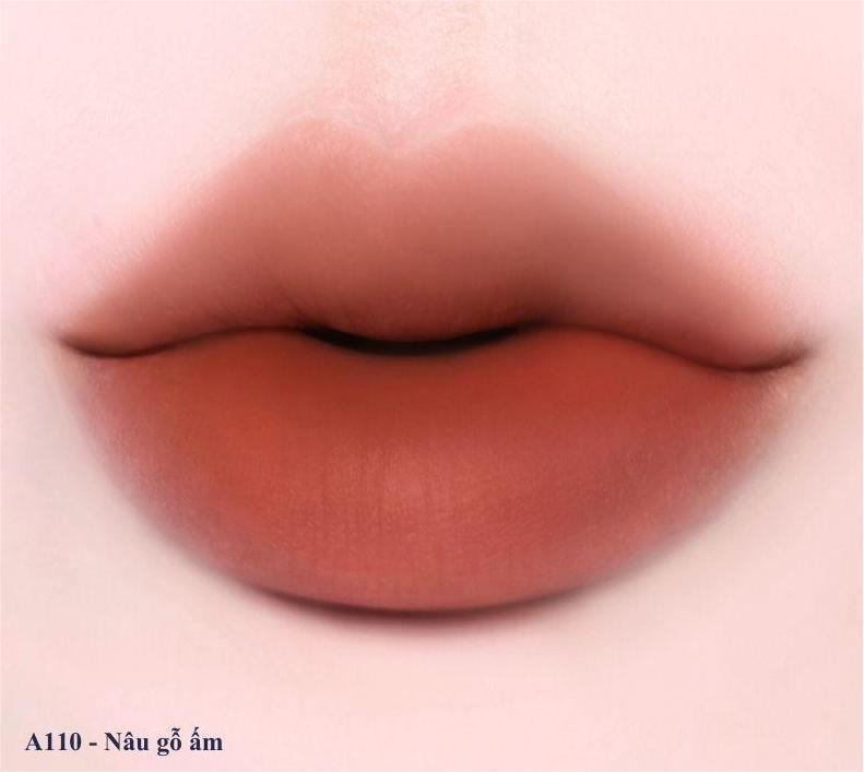 Mix màu (Combo Bất Bại): Sử dụng A102 (Nude Mơ) làm nền và nhấn lòng môi bằng A110 để có đôi môi Ombre đầy chiều sâu.