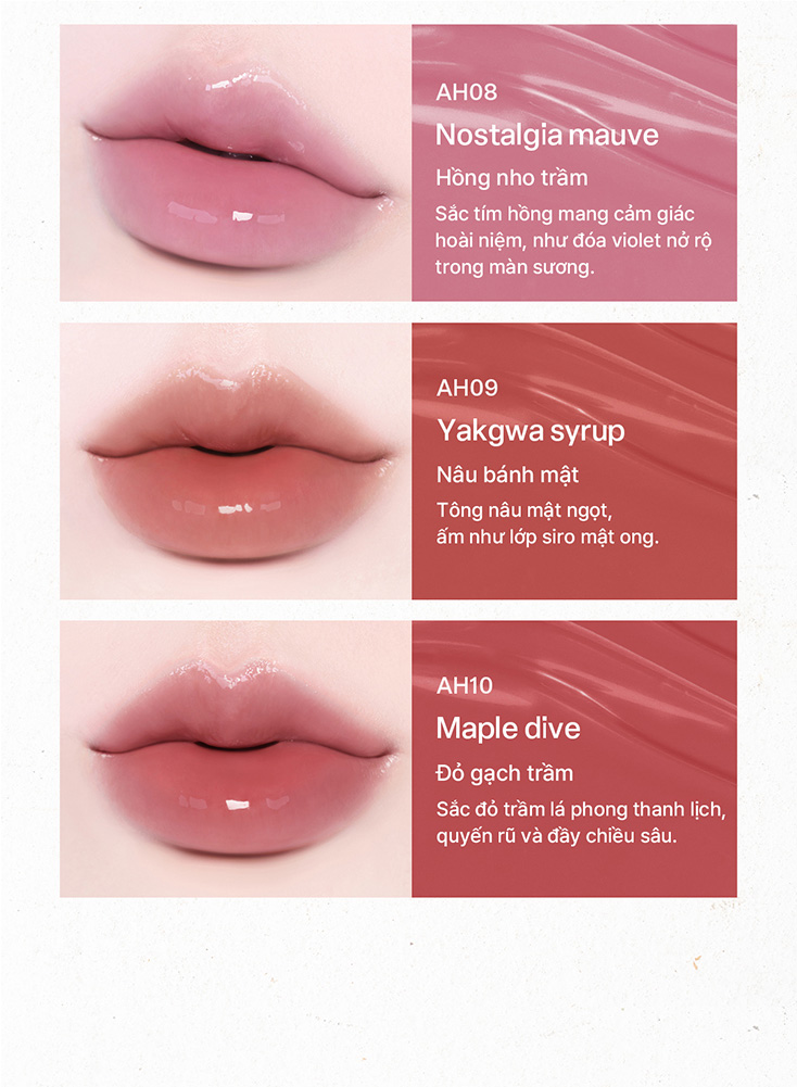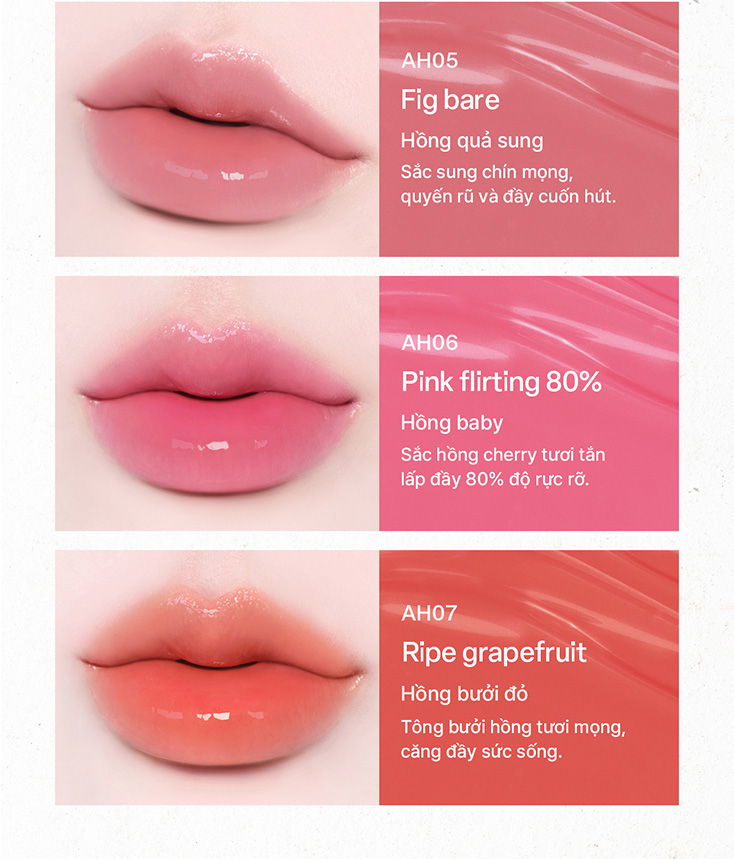 Vẫn lấy cảm hứng từ khí chất bất biến cùng nhan sắc và phẩm hạnh biểu tượng của nàng Xuân Hương, nhưng lần này, vẻ đẹp ấy được tái hiện qua lăng kính căng mọng, hiện đại và tràn đầy sức sống với bộ ba đột phá: Air Lite (Kết cấu bóng nhẹ tựa không khí), Flower Dew (Độ bóng trong trẻo như sương sớm) và màu Mute tinh tế cùng lớp Color Stain chuẩn tông, không biến sắc sau khi trôi.