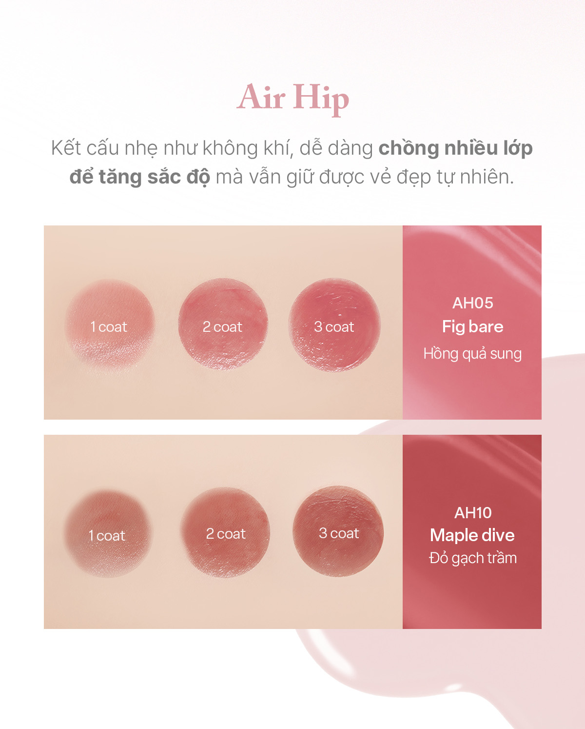 Air Lite: Kết cấu bóng nhẹ tựa không khí, kiến tạo hiệu ứng căng mọng tự nhiên, không gây bết dính.