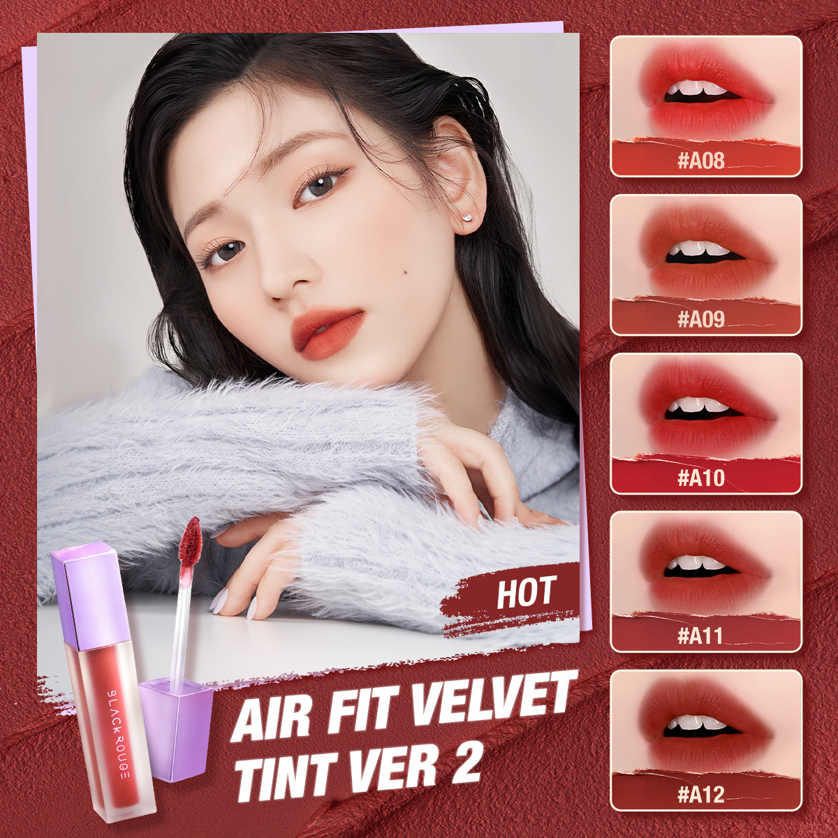 Son kem lì Black Rouge A12 - đỏ nâu gạch trầm là màu son nằm trong bộ sưu tập Black Rouge Air Fit Velvet Tint Ver 2 Mood Filter. Thỏi son Black Rouge A12 sở hữu sắc đỏ nâu gạch trầm cực kỳ hợp trên nước da của người Châu Á. Sắc son trầm ấm, cũng nhờ độ trầm pha chút tươi mới này mà có thể tôn lên làn da trắng của các nàng và đặc biệt là không bị “dừ" đi chút nào.