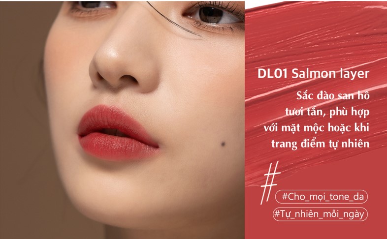 - Tint Layer: Sau thời gian dài sử dụng, đôi môi sẽ giữ lại 01 lớp màu tint nhẹ nhàng và tự nhiên, khiến đôi môi luôn ở trạng thái đẹp nhất!