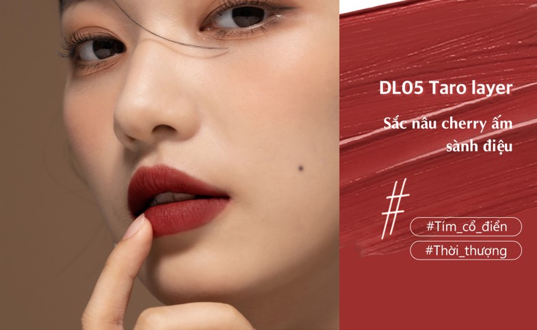 - Velvet Layer: Lần lướt cọ đầu tiên sẽ cho ra lớp son nhung mịn lì, tạo cảm giác mềm mại như lông vũ chạm môi.