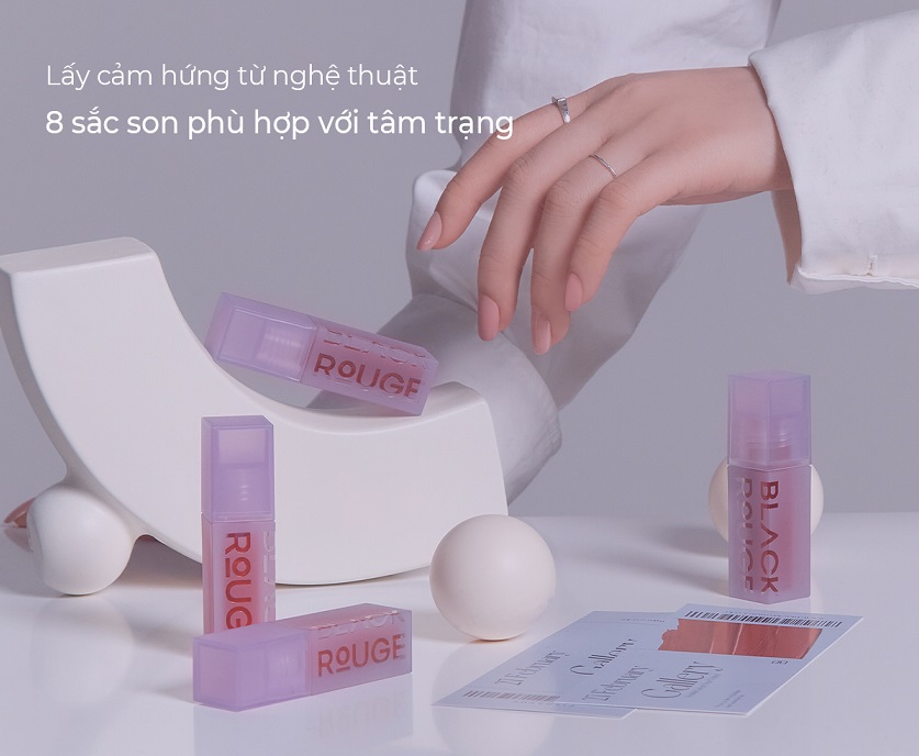 - Tiếp nối sự thành công của BST Double Layer Over Velvet - Signature, Black Rouge đã trở lại với BST Double Layer Over Velvet - Gallery với 8 sắc son mang phong cách và thần thái khác biệt. BST Gallery với thiết kế đơn sắc cùng điểm nhấn ánh tím khói thể hiện sự tinh tế, hiện đại và đầy cá tính, hệt như một tác phẩm nghệ thuật