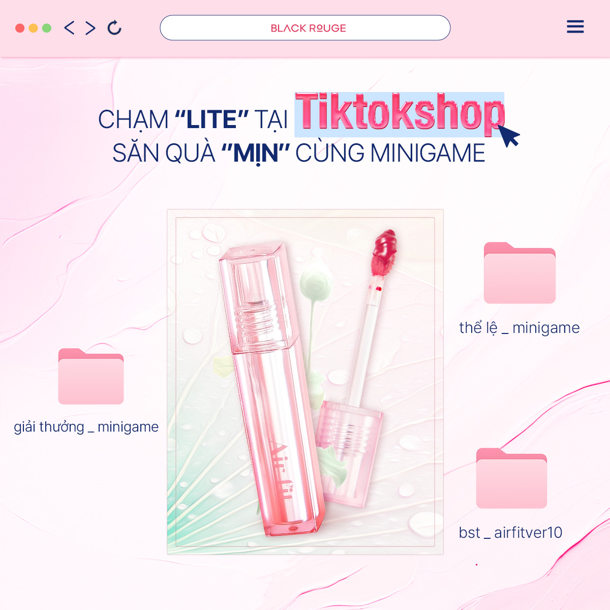 Cơn sốt Air Fit Velvet Lite (Ver 10) đang "càn quét" khắp các mặt trận, đặc biệt là tại sân chơi TikTok Shop. Để đáp lại tình yêu to lớn mà các Rouge Bae đã dành cho bộ sưu tập lần này, Black Rouge quyết định "chiêu đãi" các nàng một Minigame siêu hấp dẫn với cơ hội sở hữu những thỏi son "hot hit" nhất hiện nay hoàn toàn miễn phí.