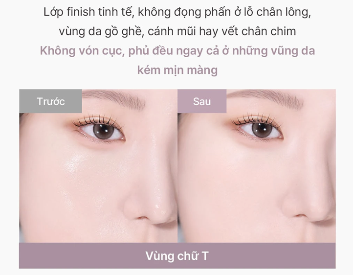 - Tập trung: Tán từ trung tâm ra ngoài, chú trọng vùng chữ T, trán và cằm để kiểm soát dầu thừa tốt nhất.
